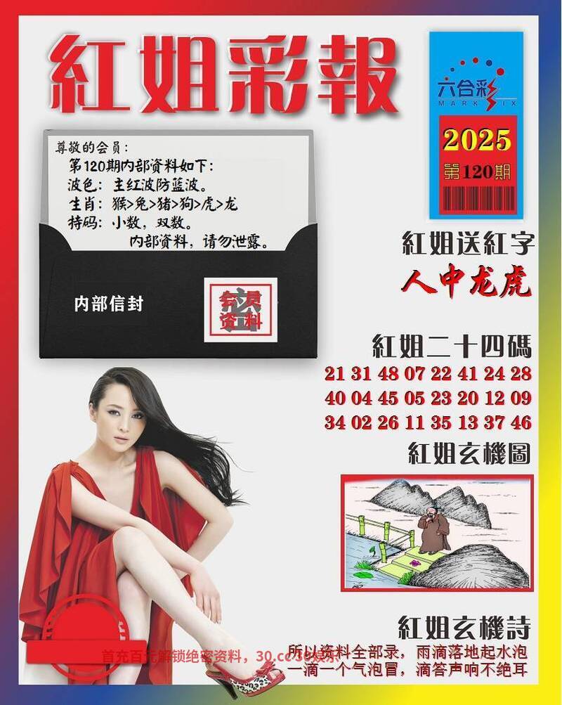 121期:红姐彩报:【若有所亡】 解:形容人心神不定或因内心空虚而茫然若失的状态。 综合生肖:虎狗龙猴鸡兔 综合12码:04.16.08.20.02.14.10.22.09.21.03.15 |